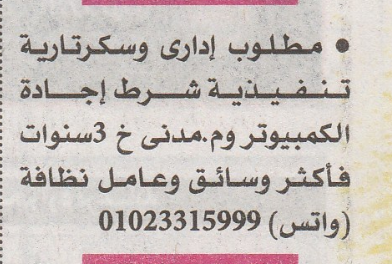 - سكرتارية تنفيذية شرط إجادة الكمبيوتر