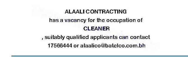 ALAALI CONTRACTING in Bahrain has announced cleaning job vacancies with good salary.